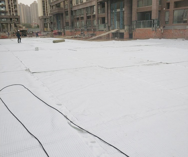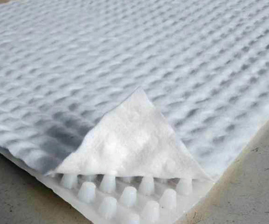 高分子防護(hù)排水異型片自粘土工布卷材是由高密度聚乙烯(HDPE)純白原料,在熔融狀態(tài)下經(jīng)真空吸塑一次成型制成,制造出的單向連續(xù)密閉殼體型凸起的板狀材料,形成一種膜、殼連接,具有立+體排水空間和一定支撐剛度,液體、氣體可以在其內(nèi)流動的防護(hù)排水卷材。